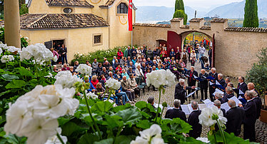 Am 19. Oktober 2025 fand auf Eppan Berg Castelmusika mit vollem Erfolg statt. Die Besucherinnen und Besucher schlenderten gemütlich von Ansitz zu Ansitz, ließen sich von der herbstlichen Kulinarik verzaubern und genossen eine vielseitige musikalische Begleitung. Die gemütliche Herbststimmung wurde durch das farbenfrohe Herbstambiente der Innenhöfe perfekt ergänzt.
