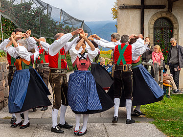 Besonderer Dank gilt den verschiedenen Musikgruppen und den beiden Männerchören, deren Konzerte den Tag musikalisch getragen und die Gäste sichtlich in Stimmung gebracht haben. Ihre Vielfalt und Leidenschaft haben Castelmusika zu etwas Besonderem gemacht und den unterschiedlichen Geschmäckern gerecht. Für viel Schwung und gute Laune haben die Eppaner Schuhplattler und die Volkstanzgruppe Eppan – Kaltern gesorgt. Auch ihnen vielen Dank.