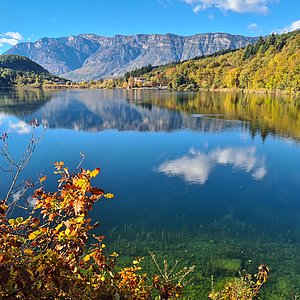 Der nur wenige Gehminuten nordöstlich positionierte kleine Montiggler See punktet indessen mit etwas mehr Gemütlichkeit und Ruhe. Beide Seen lassen sich wunderbar durchschwimmen, mit einem Boot durchqueren oder per pedes sowie mit dem Bike umrunden.
