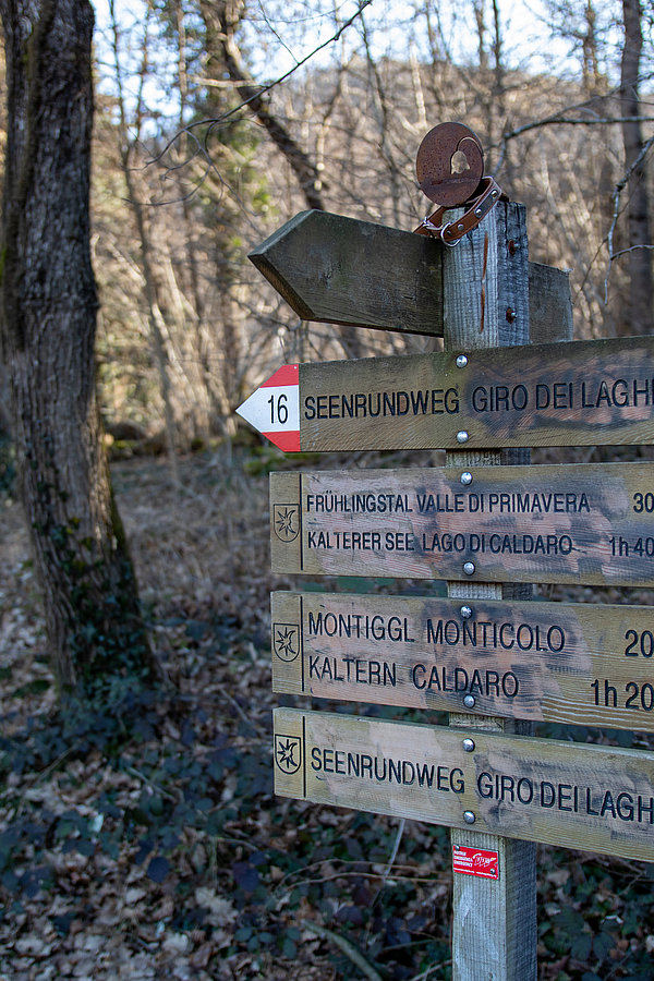 Geschichte und Geologie: Auf weniger begangenen Pfaden erkunden wir Wälder, Heidelandschaften und verschiedene Klimazonen bis hinauf zum Höhenbühel (695 m), einer meditativen Oase zwischen eisenzeitlichen Überresten und senkrecht abfallenden Felswänden über dem Etschtal.