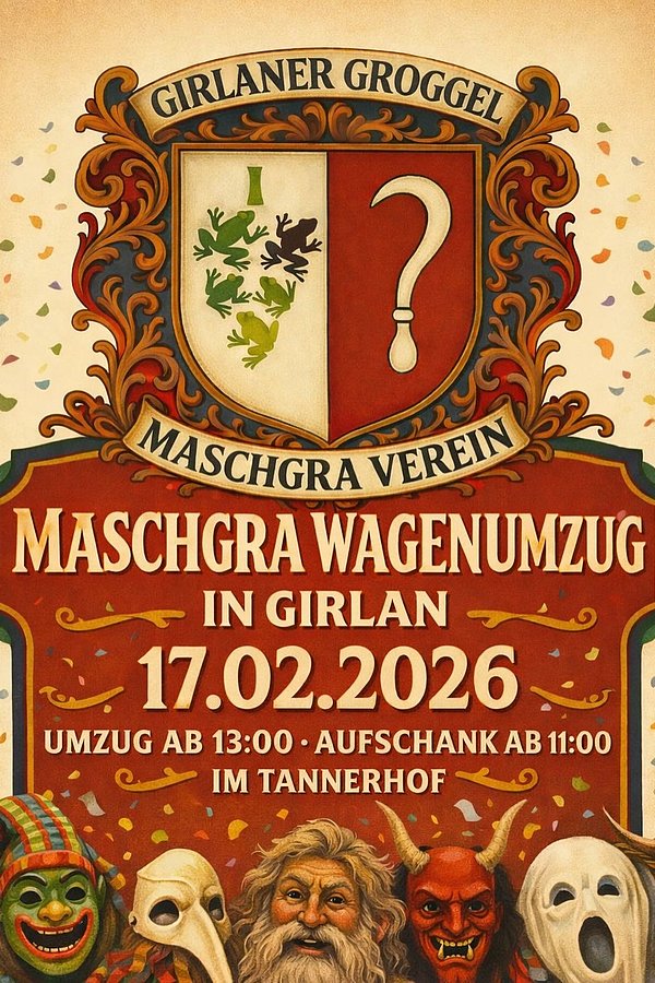 Der Ausschank beginnt um 11 Uhr, der Maschgra-Umzug startet um 13.30 Uhr und führt durch den Ort Girlan.