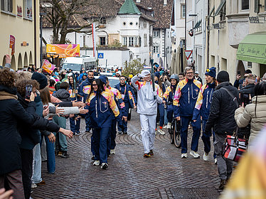 Un momento particolarmente emozionante si è verificato il 29 gennaio, quando verso mezzogiorno la torcia ha attraversato solennemente Appiano. Tutti gli abitanti del paese sono stati cordialmente invitati a partecipare a questo evento unico e a diventare parte di un momento storico. Numerose persone si sono recate a San Michele il 29 gennaio, hanno accompagnato la fiamma olimpica nel suo percorso attraverso il comune e hanno dimostrato insieme l'entusiasmo, la coesione e l'ospitalità della nostra regione. Quel giorno Appiano ha brillato all'insegna dei valori olimpici.